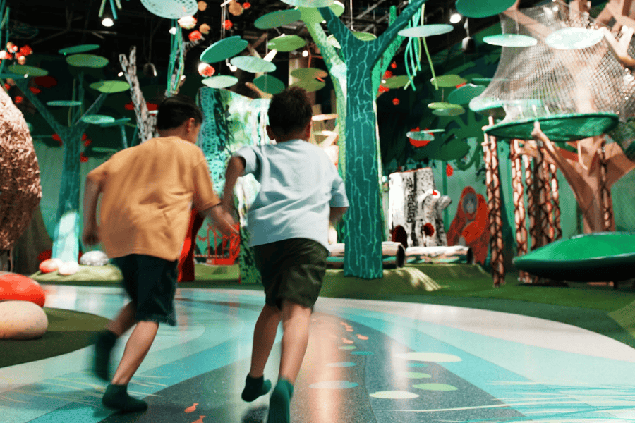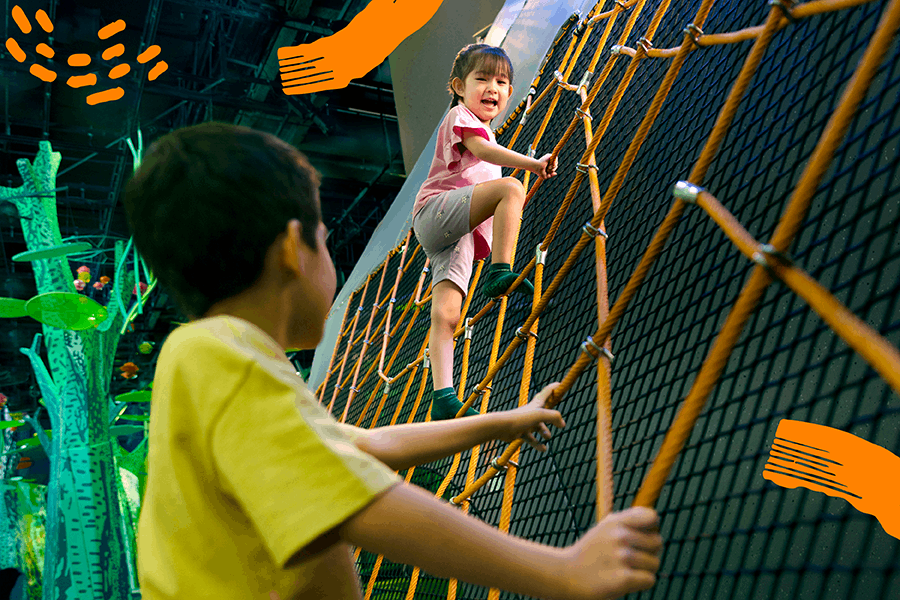 Kids explore best with guidance! Each adult is allowed to supervise up to two children at a time within the play area.