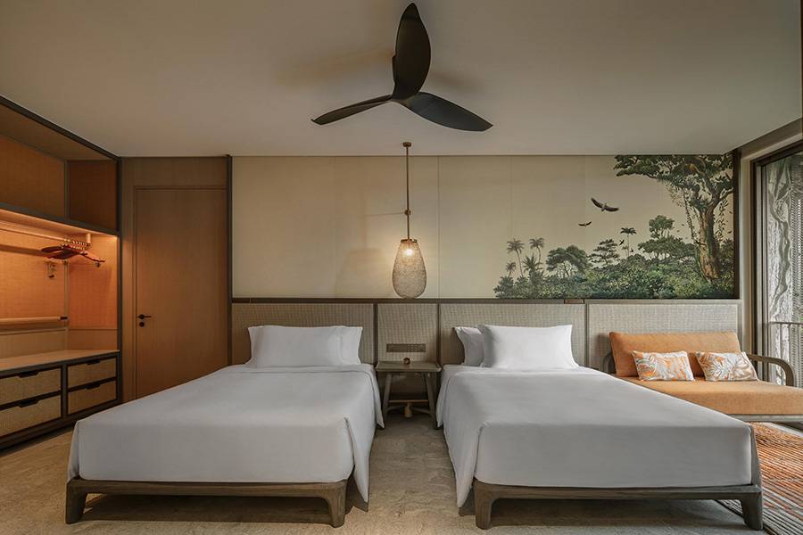 With two double size beds, colours and textures drawn from the rainforest, the guestroom’s open design invites a tranquil, immersive experience in nature.
